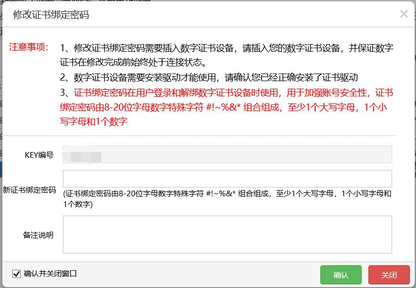 按照要求重新设置CA数字证书绑定密码,点击确认即可修改完成。